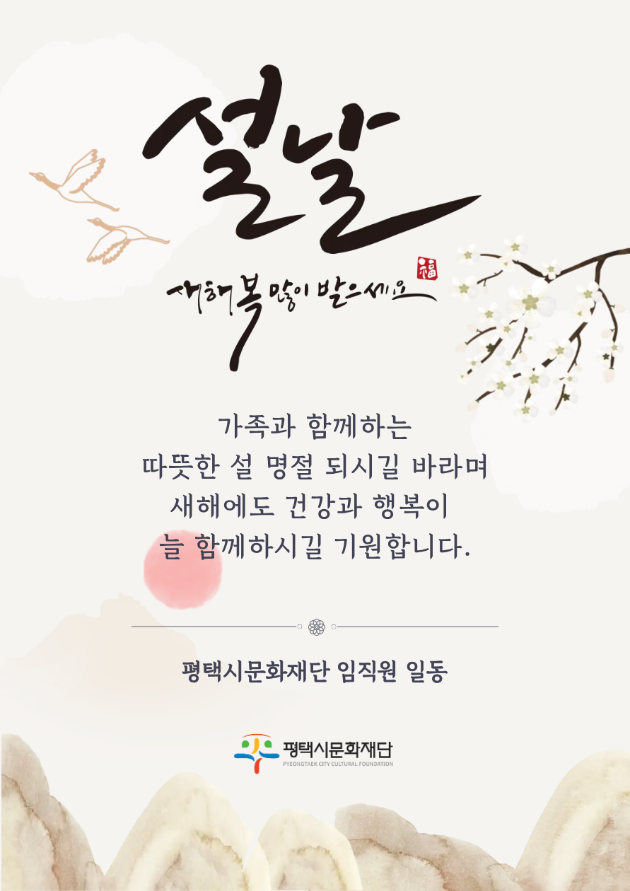 새해 복많이 받으십시오. 가족과 함께 하는 따뜻한 설 명절 되시기 바랍니다.